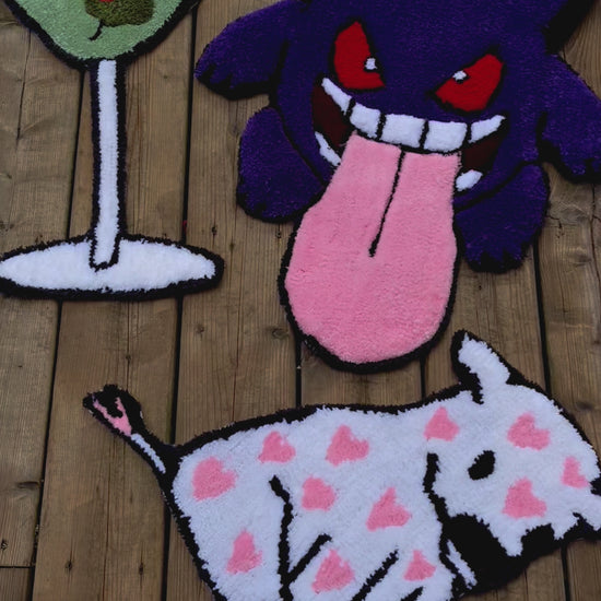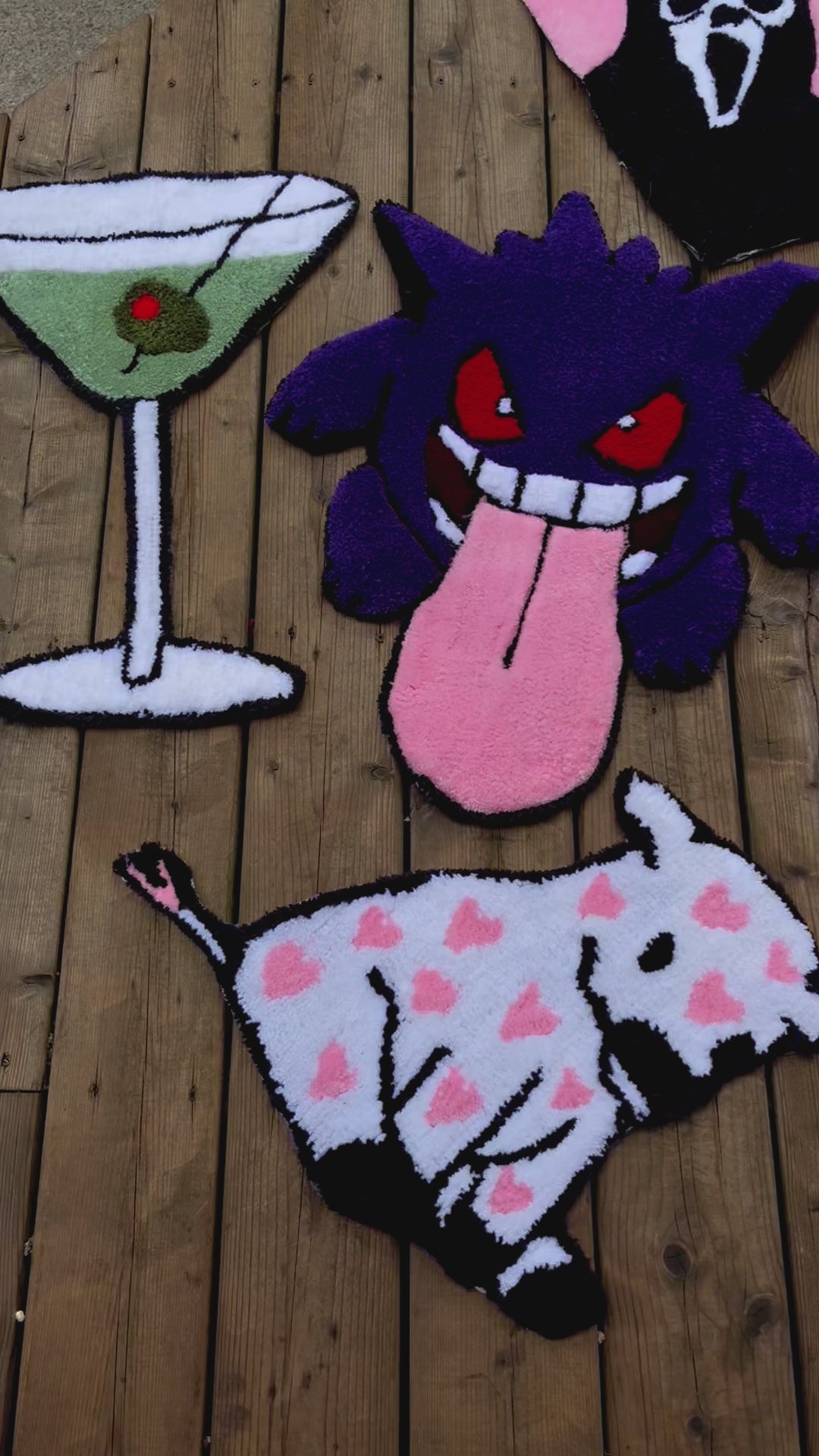 This handmade "Deadpool x Wolverine" cut pile rug is made with acrylic yarn, monks cloth and felt backing. It's hand tufted, and then levelled, carved and sculpted with the utmost care and attention.