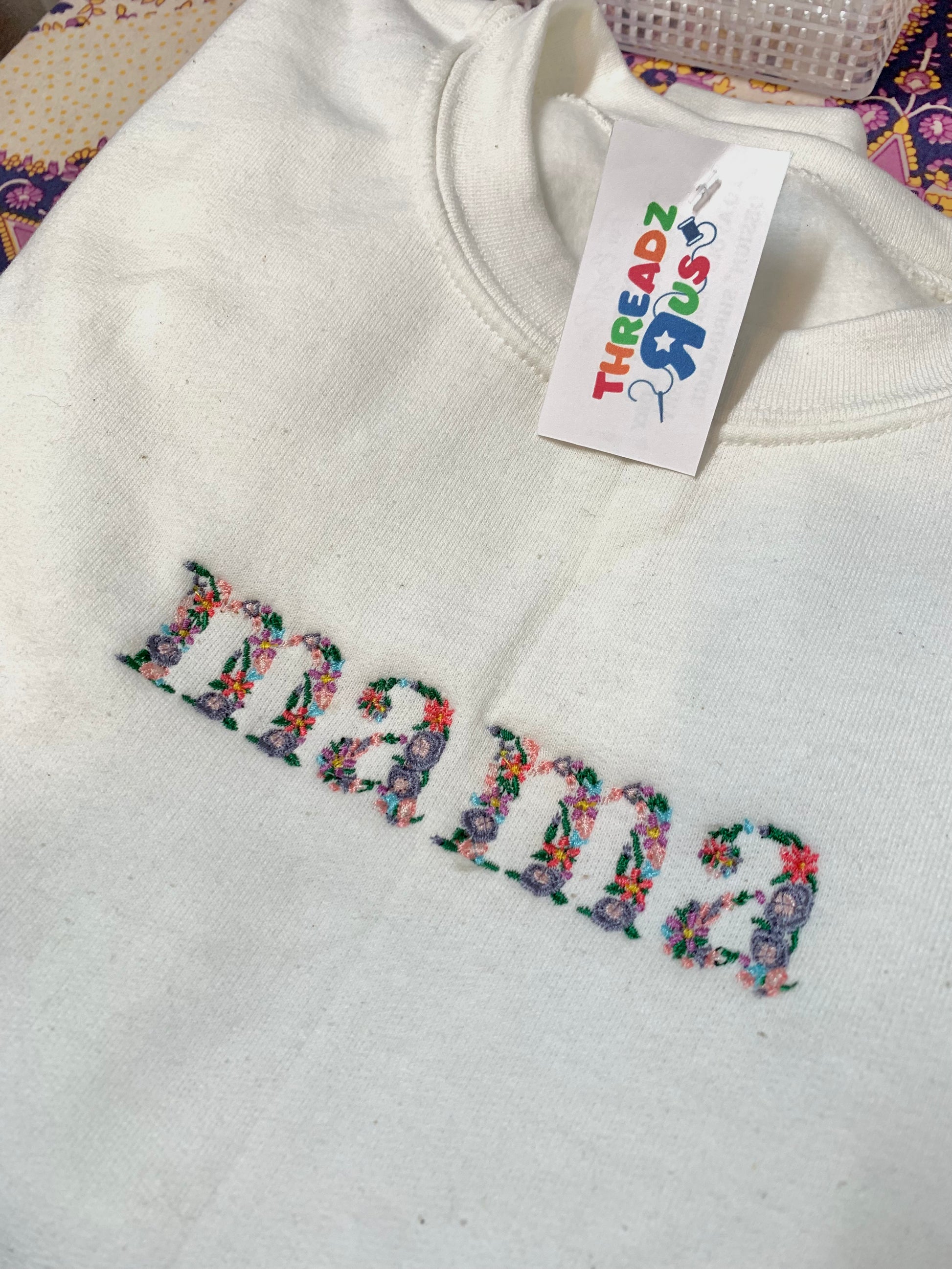 Floral Text Custom Embroidered Sweater