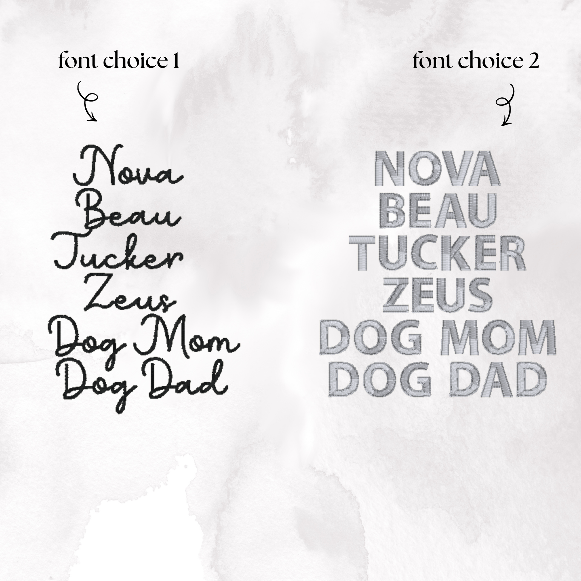 Custom Dog Breed Embroidery: Choose from a wide range of breeds — from Golden Retrievers to Frenchies, Doodles, and more.