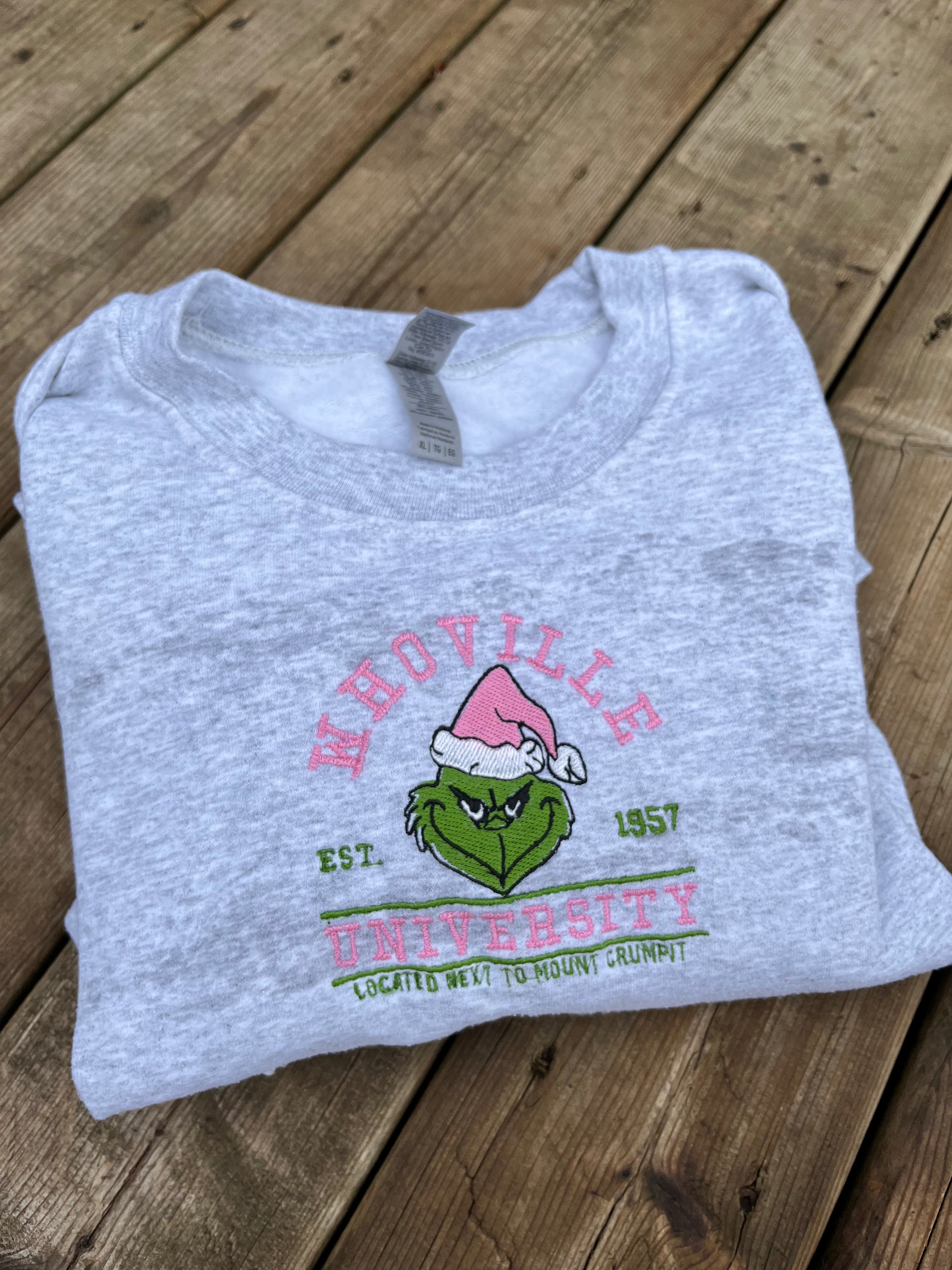 Customize the thread colour of the WRITING & HAT parts of this design- if no customization is chosen you'll get pink.
